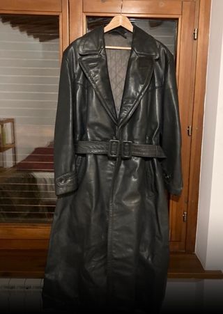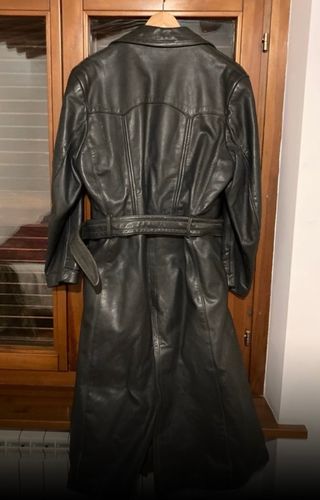 Trench lungo in pelle grigia da ufficiale tedesco ww2, molto pesante e materiale molto resistente, bellissima con uno schirmmutze. Unici difetti sono riportati in foto