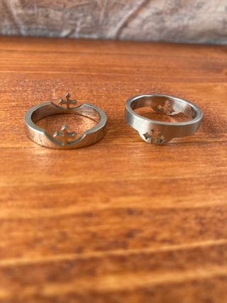 Anello con croce medievale separabile, parte superiore in acciaio opacizzato e parte inferiore in acciaio cromato, misura come in foto