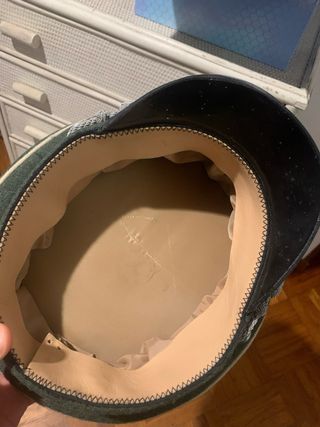 Berretto blaugrau luftwaffe militare tedesco della seconda guerra mondiale. fascia per il sudore in cuoio grigio, non ci sono timbri o marchi - Tessuto: lana - Colore: blaugrau - Dettagli: bottoni - Ottimo stato di conservazione.