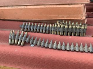 Tre scatole portamunizioni militari vintage, in buone condizioni. Sono perfette per collezionisti o per un utilizzo decorativo. cartucciere a chiusura ermetica. - Misure diverse: - 2 scatole da 250 colpi calibro 7,62 mm NATO e 1 scatola da 100 colpi calibro 12,7 mm. - Ideali per collezionisti o per uso decorativo.
