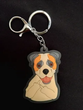 Portachiavi con un simpatico cagnolino. - Design in gomma. - Moschettone in metallo.