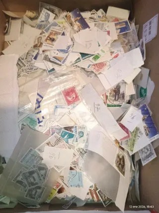 Collezione di 1000 francobolli da diverse parti del mondo, inclusa la Spagna, con alcuni ripetuti. Varietà di francobolli per ampliare la tua collezione. Guarda le foto, quello che vedi è quello che ricevi...