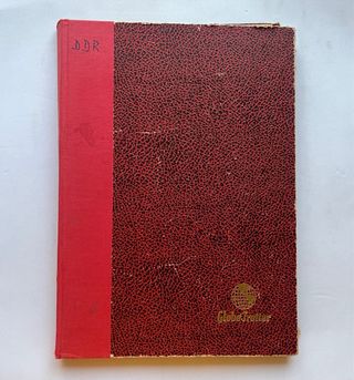 Album per collezionare francobolli, con la sua custodia protettiva. - Copertina rigida di colore marrone. - Decorazione dorata sul dorso. - Include scatola per riporlo.