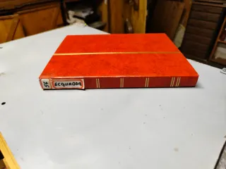 Album per francobolli dell'Ecuador. - Copertina rossa con dettagli dorati. - Etichetta sul dorso con la dicitura ECUADOR 56.
