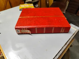 Volume per la conservazione dei francobolli. Mancano quattro pagine che non si vedono in foto - Copertina rigida di colore rosso. - Decorazioni dorate sul dorso. - Numero di volume 710 stampato sul dorso.