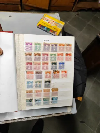 Album per francobolli del Brasile. Ci sono 10 pagine che non si vedono - Copertina rigida rossa. - Dettagli dorati sul dorso.