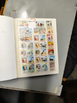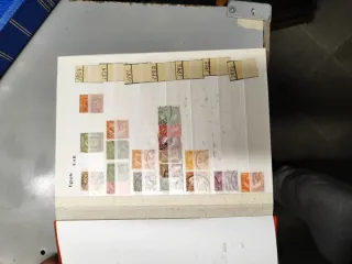 L'album contiene francobolli secondo le fotografie. Se sei interessato, posso fornire più dettagli con altre foto.