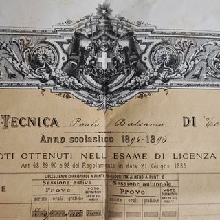 Antico diploma di Scuola tecnica di Palermo. Anno 1896 con Marca da bollo di lira italiana . Dimensione non piegato cm 55x40. Condizioni : originali .
