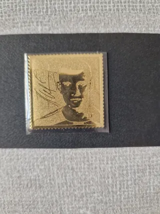 Francobollo commemorativo in lamina oro dedicato ad Andry Shevchenko. Misura 3,5 x 3,5 - Raffigurazione del calciatore. - Dettagli incisi.