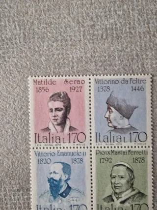 Serie di francobolli della Repubblica Italiana. - Valore nominale: 100 Lire. - Raffigurano personaggi storici italiani. - Perfetti per collezionisti.