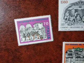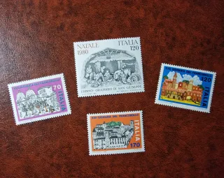 Set di 4 francobolli della Repubblica Italiana. - Francobollo Natale 1980 - Italia 120 - Francobollo XXII Giornata del Francobollo - Italia 120 - Francobollo XXII Giornata del Francobollo - Italia 70 - Francobollo XXII Giornata del Francobollo - Italia 170