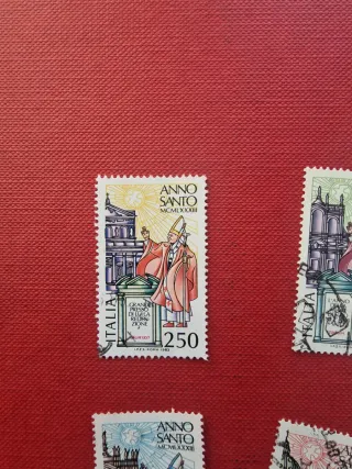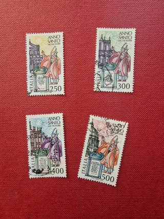 Set di 4 francobolli della Repubblica Italiana. Usati in buone condizioni - Serie Anno Santo MCMLXXXI. - Valori: 250, 300, 400, 500 Lire. - Raffigurano il Papa e architetture religiose.