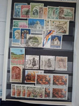 Collezione di francobolli di Cipro, con diverse denominazioni e immagini. - Francobolli con ritratti. - Francobolli ce - Diverse denominazioni in Piastre e Paras.
