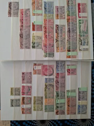 Lotto di oltre 100 francobolli di Ceylon, usati.Ripetizioni non conteggiate - Francobolli di varie annate e valori. - Presenti numeri scritti a mano su alcuni francobolli (es. 67, 70, 93, 100, 112, 114). - Alcuni francobolli mostrano la dicitura CEYLON POSTAGE.