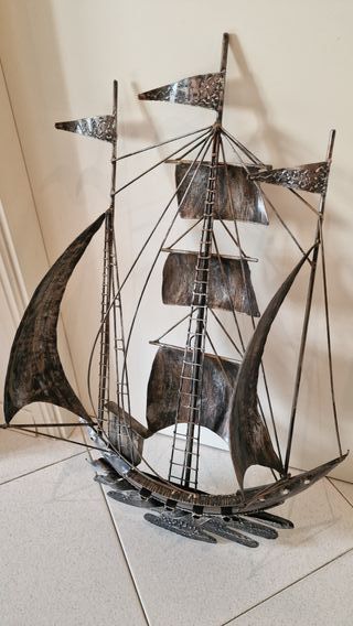 Barca Nave Veliero in ferro battuto bronzato 85x53