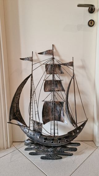 Barca Nave Veliero in ferro battuto bronzato 58x35
