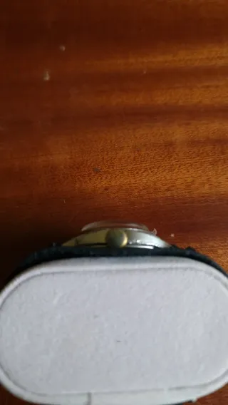 Orologio da polso meccanico con cinturino in pelle. - Quadrante color oro con dettagli bianchi. - Datario. - Ghiera girevole. - Fondello in acciaio inossidabile. - Movimento a carica manuale.