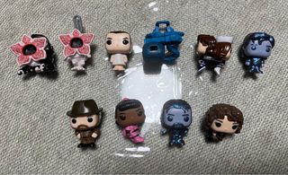 Collezione di mini action figure Funko Pop di Stranger Things, provenienti dagli uova Kinder Joy. Include vari personaggi della serie. Figure collezionabili. Design dettagliato. Ideali per i fan di Stranger Things. Si vendono insieme o separatamente. Un'action figure costa 2€. Si accettano offerte per due o più figure.