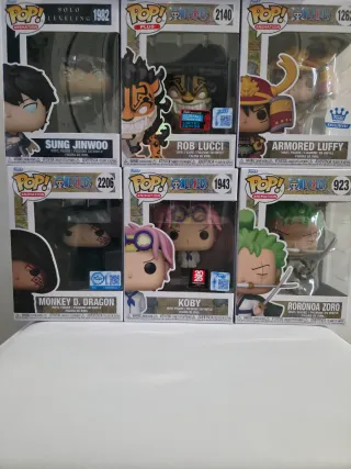 Collezione di Funko Pop originali dedicati al mondo degli anime, tra cui One Piece e Solo Leveling. - Funko Pop Tony Tony Chopper (One Piece) - Funko Pop Sanji (One Piece) - Funko Pop Sung Jinwoo (Solo Leveling) - Funko Pop Rob Lucci (One Piece) - Funko Pop Armored Luffy (One Piece) - Funko Pop Monkey D. Dragon (One Piece) - Funko Pop Koby (One Piece) - Funko Pop Roronoa Zoro (One Piece)