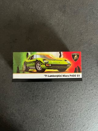 Modellino Hot Wheels RLC della Lamborghini Miura P40 SV del 1971. - Scala 1:64. - Colore verde metallizzato. - Presentato in teca trasparente e scatola illustrata.