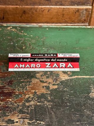 Righello pubblicitario vintage Amaro Zara anni 50 in metallo