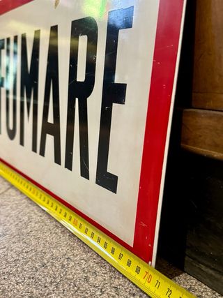 Segnale vintage Vietato Fumare in lamiera, un pezzo originale per dare un tocco retrò. - Scritta VIETATO FUMARE in nero. - Cornice rossa. - Materiale in lamiera.