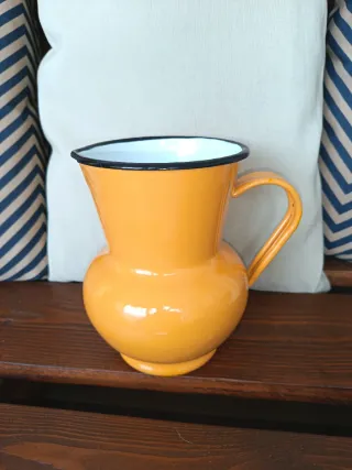 Brocca Smaltata Arredo Vintage Gialla anni 70 in smalto giallo, un pezzo d'arredo vintage. - Design ispirato agli anni '70. - Smalto lucido e resistente.