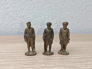 Set di tre figure di soldatini in metallo, ispirate all'India britannica. - Altezza approssimativa 40mm. - Dettagli curati.