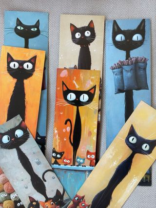 Set di segnalibri reversibili con illustrazioni di gatti. Design artistico e originale. Ogni segnalibro presenta uno stile unico di gatto. Ideale per gli amanti dei gatti e della lettura. Il prezzo è per ogni confezione da 10 unità.