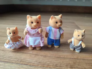 Set di figure di gatti del marchio Gmailia degli anni '90. Sono figure in vinile flocccato. Sylvanian. - Include 4 figure di gatti. - Design classico degli anni '90. - Materiale: vinile flocccato.