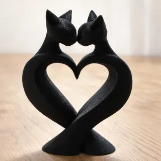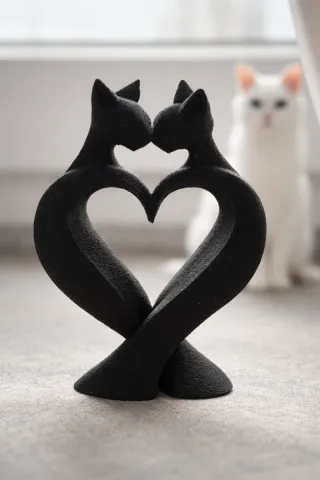 Bella figura decorativa di gatti che formano un cuore, ideale per la decorazione della casa o come regalo speciale per gli amanti dei gatti. Design elegante e minimalista con due gatti innamorati che creano un cuore, perfetta per scaffali, scrivanie, tavolini o decorazione del soggiorno o della camera da letto. Pezzo realizzato mediante stampa 3D con finitura nera opaca, leggero, resistente e con uno stile moderno che si adatta a qualsiasi arredamento. Perfetta come: ❤️ regalo per la coppia ❤️ regalo per gli amanti dei gatti ❤️ decorazione romantica ❤️ decorazione moderna o minimalista ❤️ dettaglio originale per la casa. Non è un prodotto di rivendita.