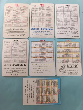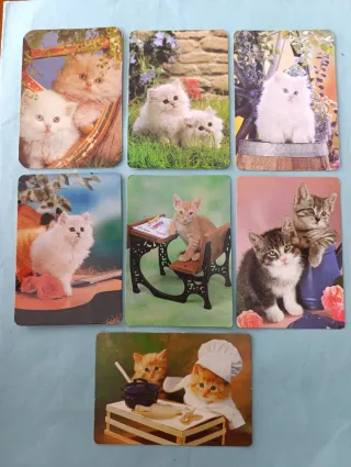 Set di 7 calendari tascabili Gatti degli anni 1984, 1988, 1993, 1994, 2001, 2005 e 2007. Prezzo totale del lotto 2€.
