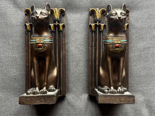 Set di due figure decorative di gatti. Materiale: Bronzo. Design: Stile antico.
