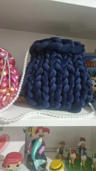 Borsa realizzata a mano con filato Marshmellow. - Materiale morbido e voluminoso. - Design unico e moderno. - Tracolla con perle.