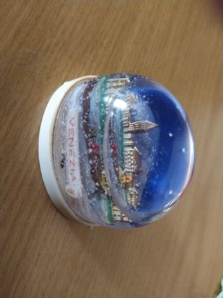 Graziosa accessorio a tema Venezia, un accessorio vintage che porta con sé il fascino della città. - Decorazione interna con scorci di Venezia. - Base bianca. - Elementi decorativi scintillanti all'interno.