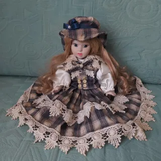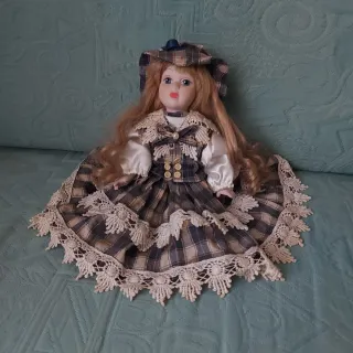 Bambola da collezione in abito a quadri