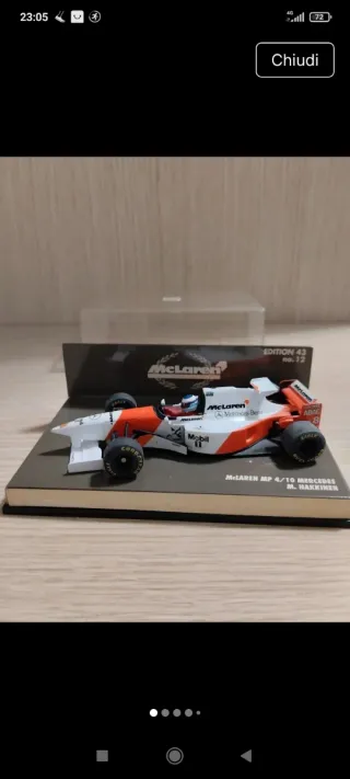 Modellino della McLaren MP 4/10 Mercedes, guidata da Mika Hakkinen. - Scala 1/43 - Edizione 43, numero 12. - Sponsor Mobil 1 e Mercedes-Benz. - Pneumatici Goodyear.