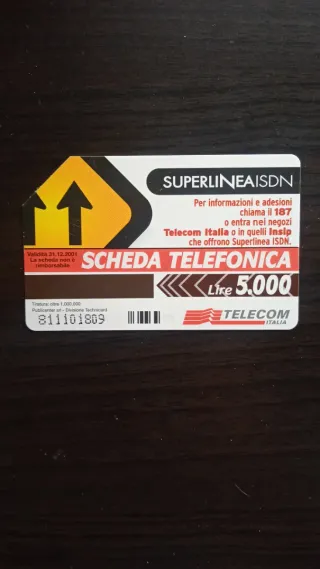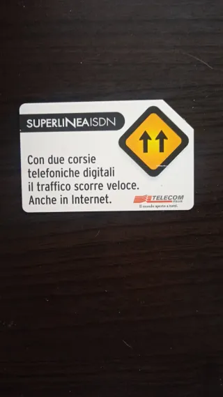 Scheda telefonica Telecom Italia Superlinea ISDN. - Con due corsie telefoniche digitali. - Il traffico scorre veloce, anche in Internet. - Il mondo aperto a tutti.