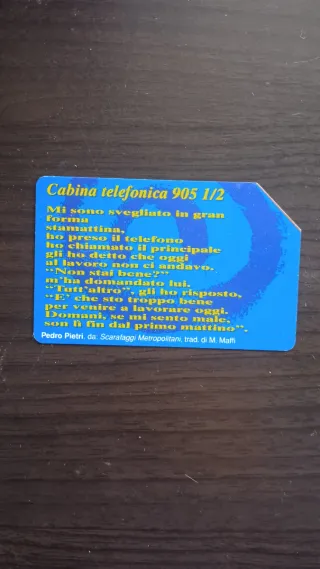 Scheda telefonica con poesia Cabina telefonica 905 1/2 di Pedro Pietri. - Poesia Cabina telefonica 905 1/2 - Autore: Pedro Pietri - Traduzione: M. Maffi