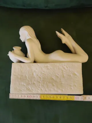 Scultura in porcellana di Christel Marriot, ispirata a Copenaghen. Raffigura una figura femminile sdraiata con un vaso. - Materiale: porcellana. - Design: Christel Marriot. - Tema: Copenaghen.