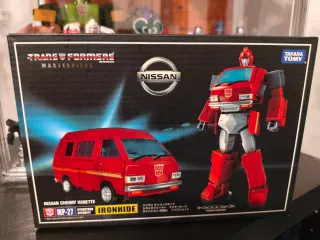 Action figure di Ironhide della serie Transformers, modello MP-27. - Colore rosso e argento. - Design ispirato al personaggio classico.
