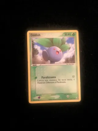 Carta Pokémon di Oddish, numero 64/115. - Attacco: Paralizzante - Costo attacco: 10 PV - Debolezza: Acqua - Resistenza: Fulmine