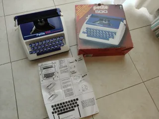 Vendo macchina da scrivere da collezione petite 500 blu completa di scatola originale e istruzioni, made in England by Byron Jardine, vintage, misure in foto, mai usata, consigliata a partite dai 6 anni, 54 caratteri con maiuscole e numeri, meccanismo leve da oliare perché a volte si inceppa, nastro da sostituire. Condizioni scatola come da foto.