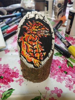 Dipinto a mano su Ramo d' albero. Misura: 5,5 x 8 cm