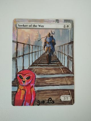 Bellissimo ritratto di un gufo, dipinto a mano su cartolina con grande attenzione ai dettagli con supporto in Plexiglass - Misura 13 x 15 cm - Raffigurazione realistica del volto di un gufo. - Dettagli delle piume e degli occhi. - Sfondo sfumato.