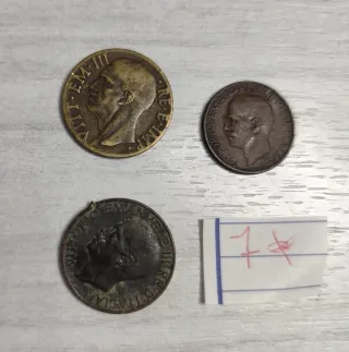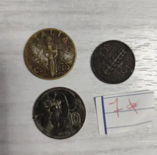 Lotto composto da tre monete italiane da 5 e 10 centesimi, risalenti alla metà del XX secolo. - Una moneta da 10 centesimi del 1940. - Una moneta da 5 centesimi del 1922. - Una moneta da 10 centesimi del 1926.