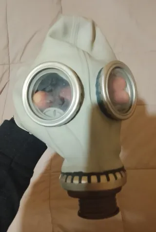 Maschera antigas dell'Unione Sovietica (URSS) Shlem Maska originale degli anni '80. Pezzo da collezione originale in gomma. Si vende solo la maschera facciale senza il filtro. Stato di conservazione impeccabile (senza uso). Maschera antigas ShM-41MU prodotta tra gli anni '60 e gli anni '80. È il modello standard più utilizzato dalle autorità nel disastro di Chernobyl nel 1986.