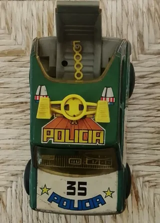 Antico giocattolo in lamiera serigrafata e plastica in scala approssimativa 1:20-1:25 prodotto dalla ditta di giocattoli spagnola Obertoys tra il 1972 e il 1974. La serigrafia rappresenta un'auto della polizia basata sul famoso modello Renault 5 con motore 950 cc lanciato in Spagna nel 1972. Come si può vedere nelle foto, è in ottime condizioni senza segni di ruggine. Le ruote funzionano e lo stato di conservazione è 9 su 10.