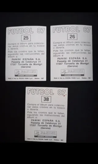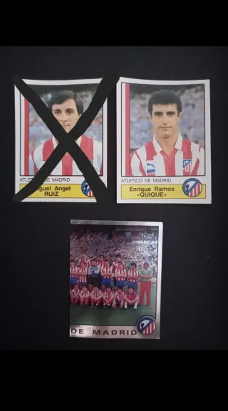 Consegna di figurine dell'Atlético de Madrid. Calcio 87 di Panini. Include la figurina N°26 di Enrique Ramos 'Quique'. Mai incollata. Include anche la figurina N°38 della Squadra destra. Mai incollata. Prezzo del lotto: 3€.