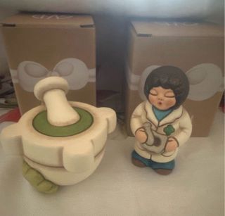 Set Thun composto da una figura di farmacista e un mortaio. - Figura di farmacista con camice bianco e mortaio in mano. - Mortaio in ceramica con pestello.